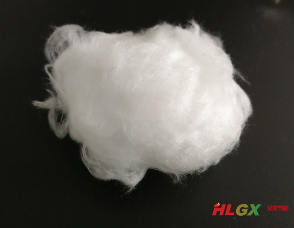HLGX氧化鋁纖維棉是國內(nèi)新型輕質(zhì)高溫絕熱材料,采用溶膠-凝膠工藝,將可溶性鋁、硅鹽制成具有一定粘度的膠體溶液,溶液經(jīng)高速離心甩絲成纖維胚體,然后經(jīng)過脫水、干燥和中高溫熱處理析晶等工藝,轉(zhuǎn)變成Al-Si氧化鋁多晶纖維,其主晶相為主要為剛玉相和少量莫來石相。